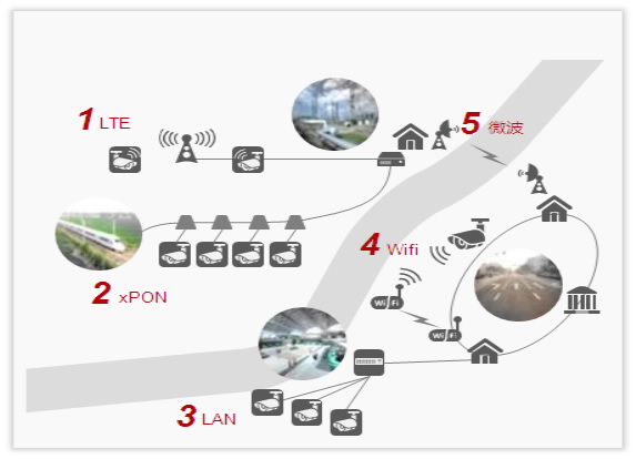 华为视频监控网络解决方案包括:LAN 接入、WI-FI接入、xPON接入、LTE接入回传以及微波远距离传输等全面灵活的组网方案。同时为解决城市监控的快速广域覆盖需求,对如海岛、荒漠,山区等边缘区域,提供混合能源、集装箱数据中心等特色方案,解决客户部署难题。